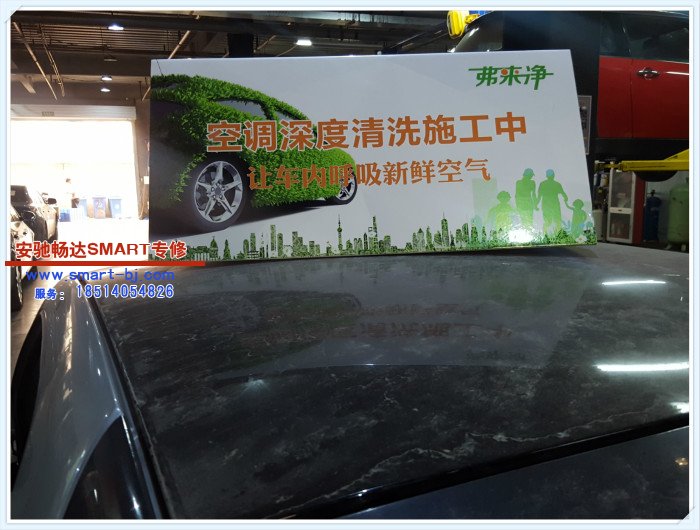 一輛奔馳smart到我店進行清洗空調、水箱、冷凝器作業維修,為即將到來的夏季空調使用做好準備。