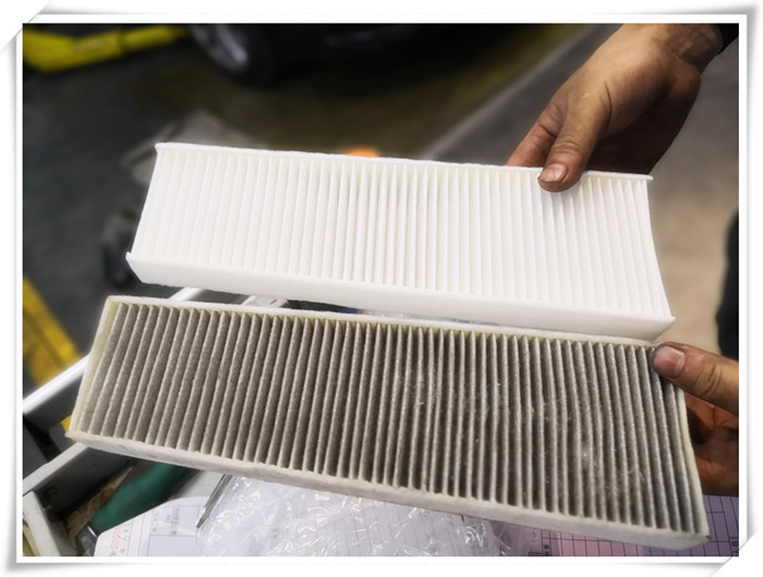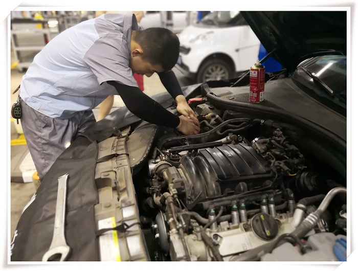 車輛進廠后,技師開始全車檢查。除了車主需要保養的項目,技師通過檢查發現節氣門和空調濾芯也需要更換,和車主溝通后車主同意更換。這臺車此次保養項目機油,機濾,空濾,空調濾,清洗節氣門。保養完最后設置下次保養提醒即可。