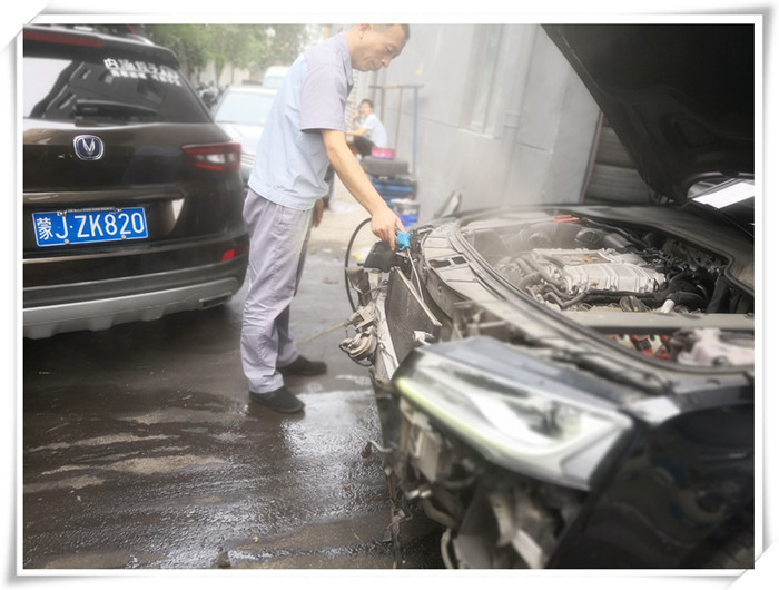 一臺行駛里程為9.4萬公里的15款奧迪a8l,因發動機水溫高來本店進行維修。
