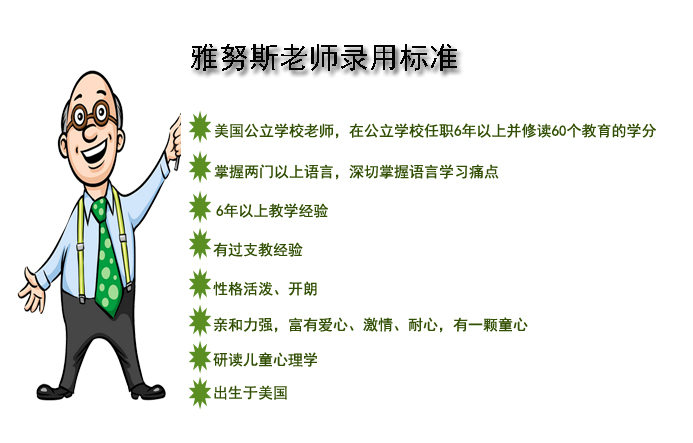 美國雅努斯英語教育公司成立于美國加利福尼亞州洛杉磯,致力于通過高效使用互聯(lián)網(wǎng),為中國學(xué)生提供高水準(zhǔn)、純正、便捷的英語課程。雅努斯英語的全部老師來自于美國,擁有大學(xué)本科以上學(xué)歷、美國公立學(xué)校教師執(zhí)照、tesol(美國政府認(rèn)證的教授英語為第二語言人群的教師執(zhí)照),正在美國的公立學(xué)校、語言學(xué)校任職。