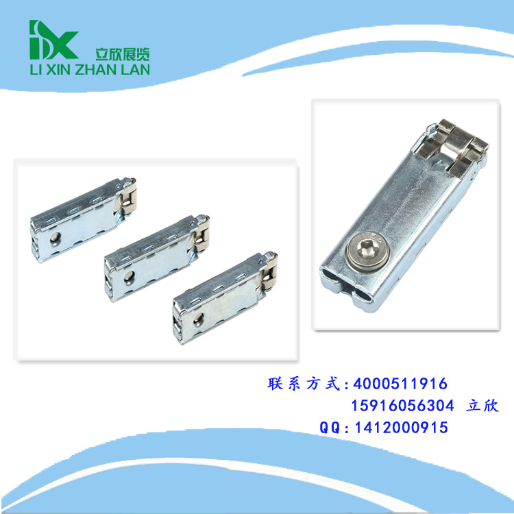 三卡鎖鎖件主要用于展覽場館,各類型材之間的連接搭建。它將兩個搭接方向不同、端面形狀不同或相同的鋁型材,通過插入型材槽口的卡爪的張開運動實現相互連接。鎖件是由彈簧片.彈簧,偏心輪.上蓋.下蓋五部分組成,結構合理.牢固性好,使用方便,尺寸符合行業標準.彈簧片采用西德進口高級彈簧鋼,模壓成行后,經先進的熱處理工藝加工而成,尺寸精確,無變形,具有較好的韌性高的強度和彈性極限,高的疲勞強度和極底的彈性模量.以p行輪替代了傳統的凸輪帶動彈簧片縱向運動,避免了鎖過頭的現象,保證了鎖件的牢固性,彈簧片具有較大的張開度,確保鋁型材不損壞.三卡鎖特點:拆裝組合方便,易裝易拆,便于運輸,節省存儲空間,經久耐用承受力150公斤。適用于展位,扁鋁連接,標攤固定等