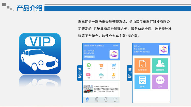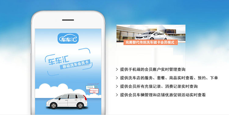 武漢車車匯科技有限公司是一家專業從事汽車后端服務市場的移動互聯網企業,旗下研發的車車匯洗車店會員管理系統軟件是一款基于云端服務的洗車店會員卡管理平臺,通過大數據分析和先進的云端技術,以終身免費服務為準則,以洗車店為服務對象,集會員管理、會員充值、店鋪管理、商品及庫存管理、交易記錄、收入報表等功能為一體,創造性的融入營銷推廣功能,支持連鎖店鋪同時管理。顛覆式手機會員卡,完美替代傳統刷卡模式,全面實現消費賬單隨時看。