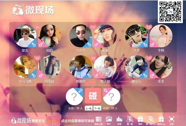 對對碰——調動現場活動氣氛,系統隨機匹配參與者,配對成功后可表演節目或做游戲;適合:企業年會,婚禮,各種聚會等;
