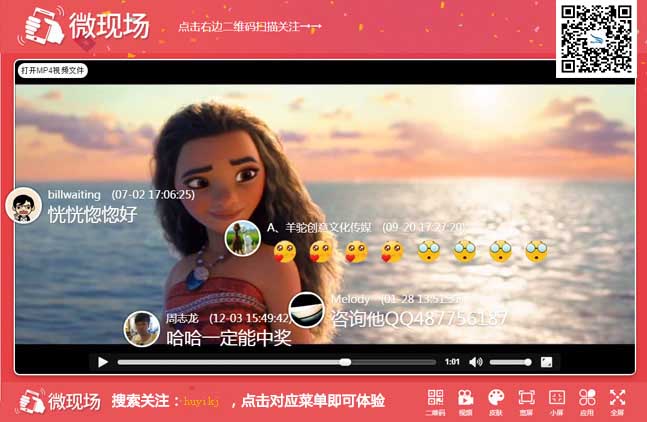 標星消息——實時互動展示,微信參與者只需要發送一次上墻命令,之后發送的任何內容都將直接顯示到大屏幕上!