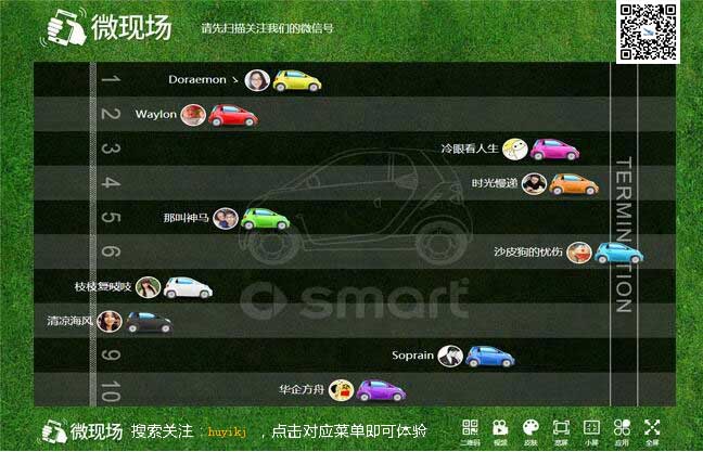 參會人員打開微信參與瘋狂搖一搖,系統將根據參與人員的搖獎速度評判比賽結果,比賽結束,冠、亞、季軍的結果將直接呈現在大屏幕上。