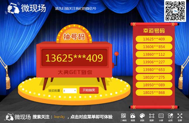 抽取幸運手機號碼,大獎就是你的啦。可以設置一次抽取1到10個幸運手機號碼,給現場活動帶來更多有趣和驚喜。