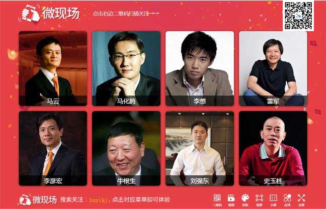 主要功能:微信簽 到,微信彈幕,微信大屏幕抽獎,微信對對碰,微信現場投票,現場搖一搖,微信墻,微信現場砸金蛋,微信幸運手機號,搶紅包,微信大屏幕簽 到,幸運號碼,現場嘉賓展示,現場相冊,現場視頻播放等15項功能展示。