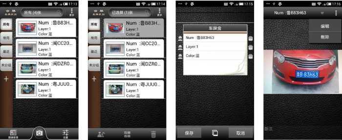 識別結果底端相片標識進入高級編輯界面,支持將識別出車牌號通過短信發送至指定號碼進行 真偽驗證;