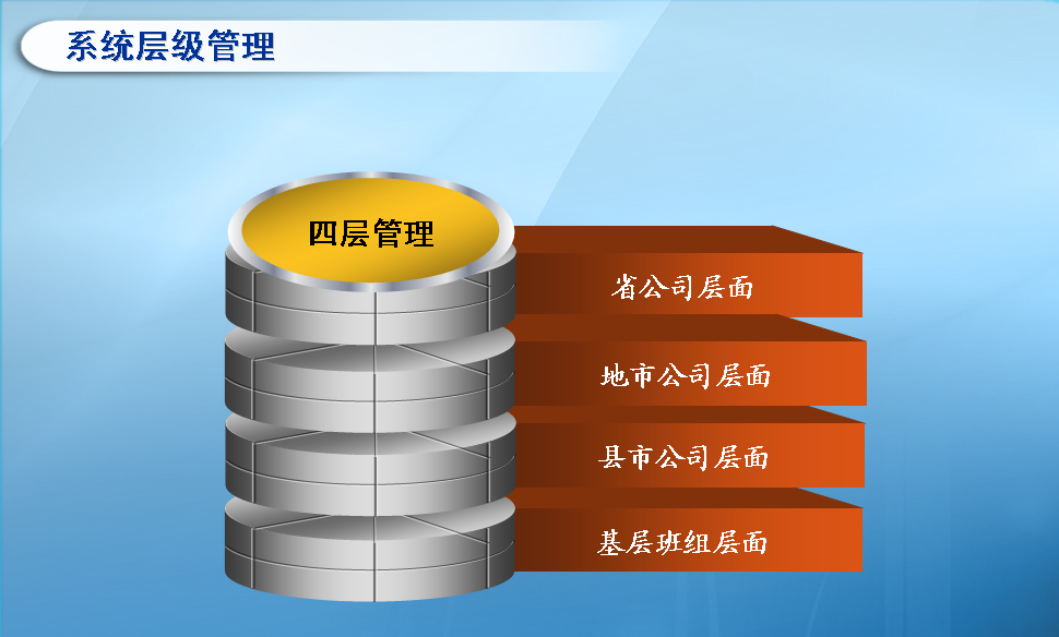 班組建設管理信息系統實現了四層管理,即:省公司層面、地市公司層面、縣市公司層面、基層班組層面。(層級可靈活定制)
