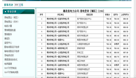 班組考評:展示省公司班組年度考評分數及排名情況。