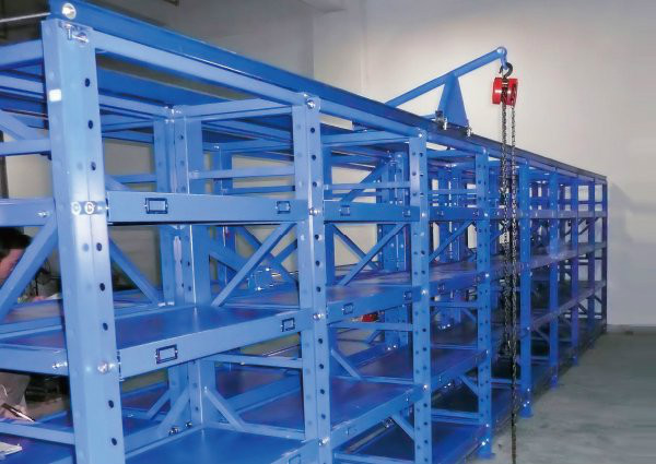 2.模具貨架用于存放模具,無需叉車,頂部選配手拉葫蘆移動車,可實現(xiàn)模具的起吊。