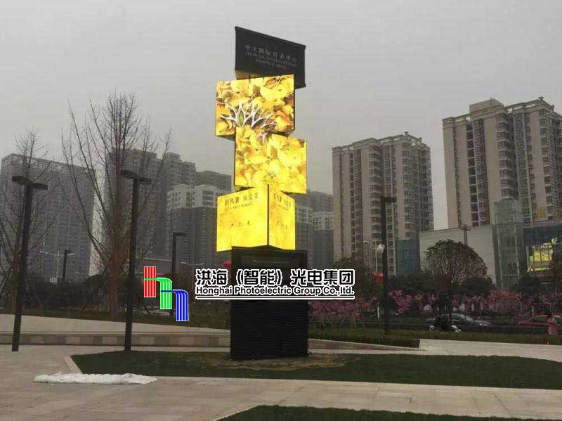 此戶外三棱led魔方柱旋轉(zhuǎn)屏工程由洪海光電公司設(shè)計并制作,該工程施工于陜西西安 中大國際商圈的戶外廣場上,是由底座、三個三棱led顯示屏柱體及頭部三部分組成,西安 led旋轉(zhuǎn)魔方屏的總高度是9.44米,為p6像素 ,每個柱體的規(guī)格是2.4米*1.68米,柱體在旋轉(zhuǎn)時可實(shí)現(xiàn)順時針、逆時針、螺旋翻轉(zhuǎn)等多種翻轉(zhuǎn)方式,其旋轉(zhuǎn)動作與顯示畫面的完美結(jié)合,使得西安 三棱魔方柱更具動感美,從而鎖住了更多人們的視線。洪海光電專業(yè)致力于室內(nèi)外新廣告 媒體設(shè)備的研發(fā)設(shè)計,目前在研發(fā)團(tuán)隊的共同努力下,led旋轉(zhuǎn)屏、led變形屏、led升降屏、led旋轉(zhuǎn)魔方柱等相繼在市場上出現(xiàn),歡迎實(shí)地考察參觀。