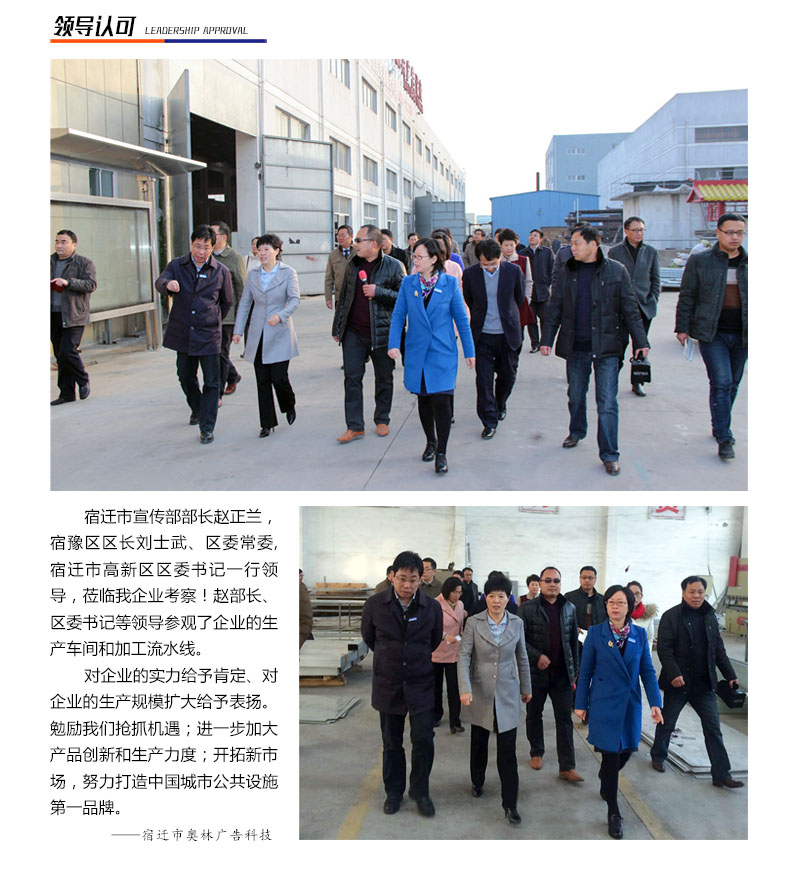 宿遷市奧林廣告科技有限公司,始創于2016年,專業從事城市公共設施的研發和制造,公司本著“以實業為基礎,以科技為先導,以優質產品回饋客戶”為經營理念。設計、生產、安裝,一站式服務,產品形成以“候車亭、電子站牌、太陽能燈箱、宣傳欄、路名牌”為核心,等涵蓋戶外所有公共設施產品的產品體系。