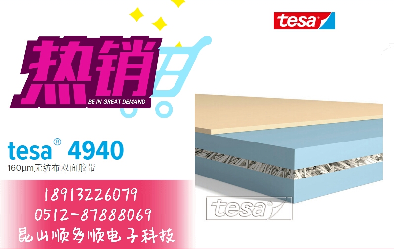 tesa? 4940是無紡布基材,使用改性丙烯酸 膠系的半透明雙面膠帶。