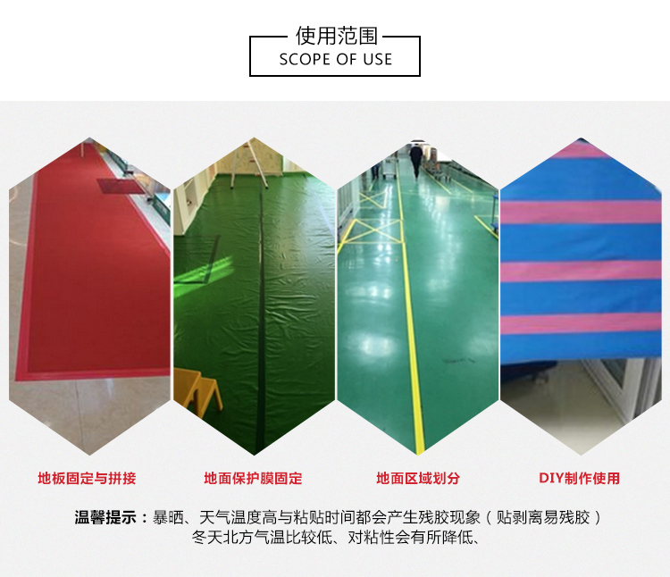 3、布基膠帶的高粘性,因此被廣泛運用在展臺布置地毯,因此也被稱為布展膠帶,或者地毯膠帶,起到了捆扎、縫合、拼接等 作用。