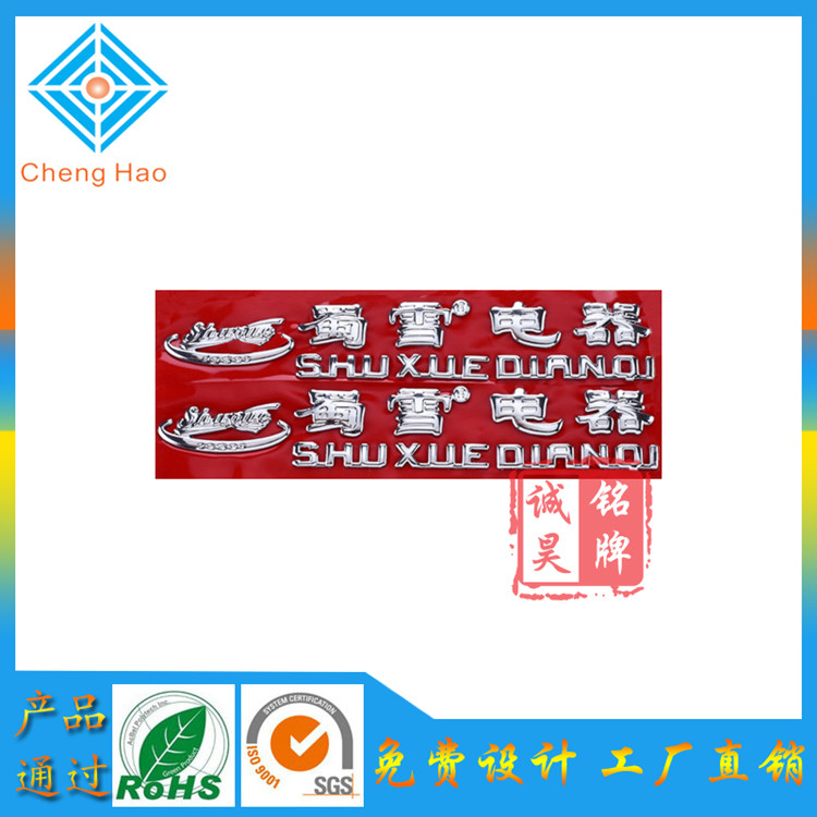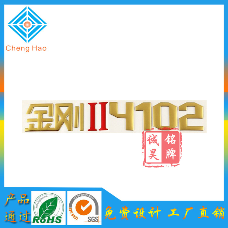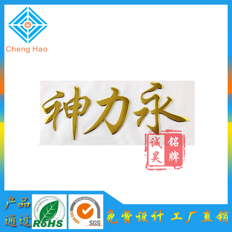 三維立體標牌有四部份組成:其一底層離心紙,其二跟底紙連在一起的貼3m膠,其三、也就是我們說的三維立體標牌(厚度一般在0.30mm到 0.50mm厚度、有全軟塑和鍍銀及鍍金組成、表面可以做成多種顏色、通常用不銹鋼鏡面色和黃金色兩種顏色、字體與字體可以做連接,也可也做字體和logo分開),