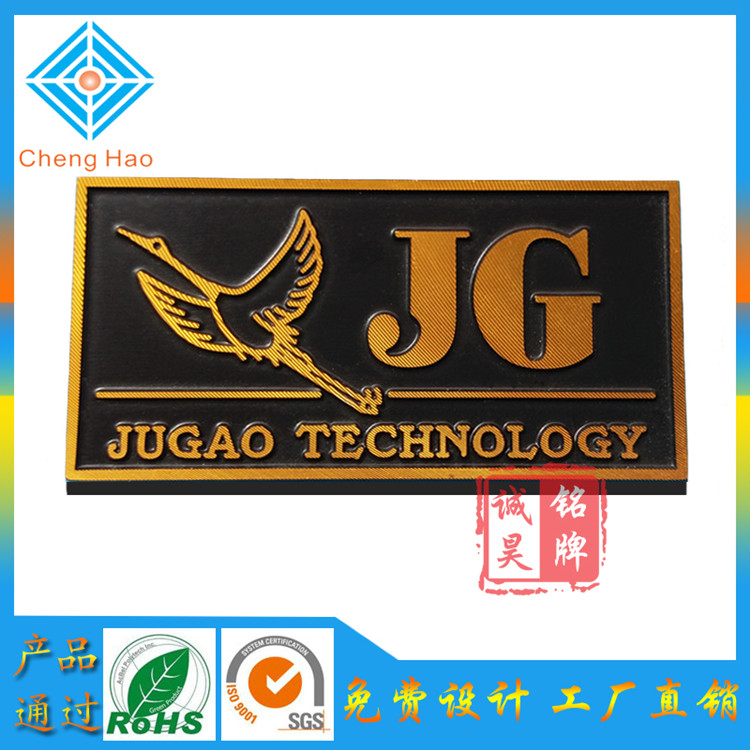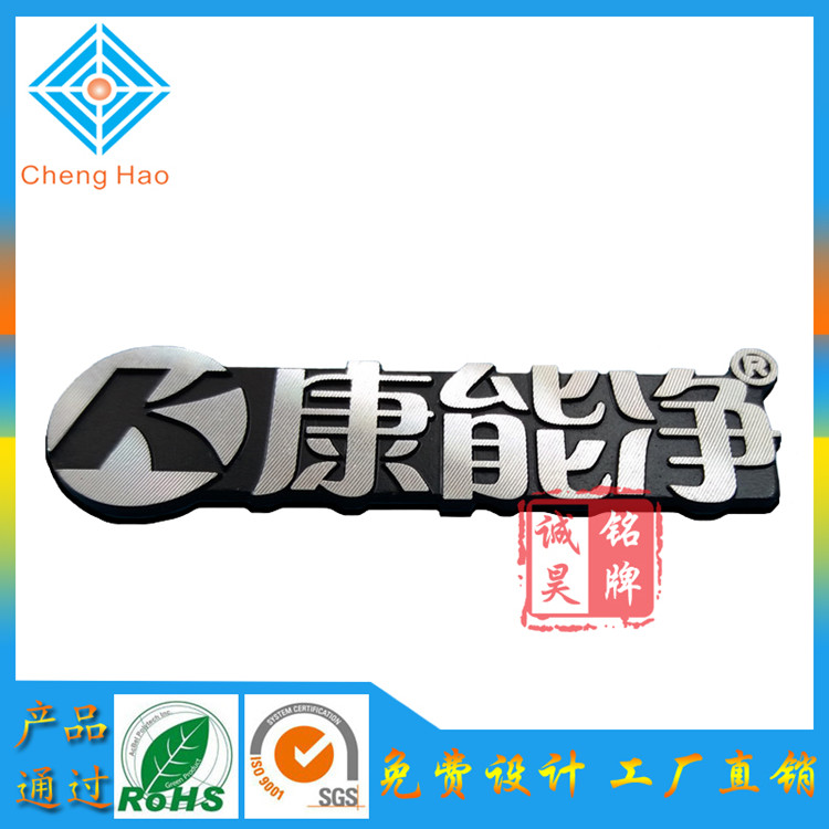 2凹字工藝:我們做壓鑄鋁標(biāo)牌之前先要開一套五金壓鑄模具和菲邊模具,模具上面把雕刻字體和logo, 雕刻字體和logo是凸起來在模具表面,將模具加熱處理好之后,就可以用于制作壓鑄鋁標(biāo)牌,將鋁板原材料油在模具表面通過油壓機(jī)擠壓成形,于凸字工藝成反比,這一種工藝可以很好把壓鑄標(biāo)牌表現(xiàn)出來。如銀面黑字:此類鋁合金商標(biāo)與黑底銀白字商標(biāo)工藝剛好相反,正常制作方法為字體和logo下凹,標(biāo)牌整體噴黑色油漆后再用高光機(jī)將標(biāo)牌表面油漆雕掉,剩下的就是下凹字體處的油漆.標(biāo)牌當(dāng)然也可拉紋處理.(拉紋也就是用拉紋機(jī)將標(biāo)牌表面的油漆拉掉,拉紋后再做一下氧化處理,這樣商標(biāo)更能抗氧化及臟污.) 。凹下去的字體的顏色你也可以選擇,我們都可以幫你調(diào)出來你要的顏色。