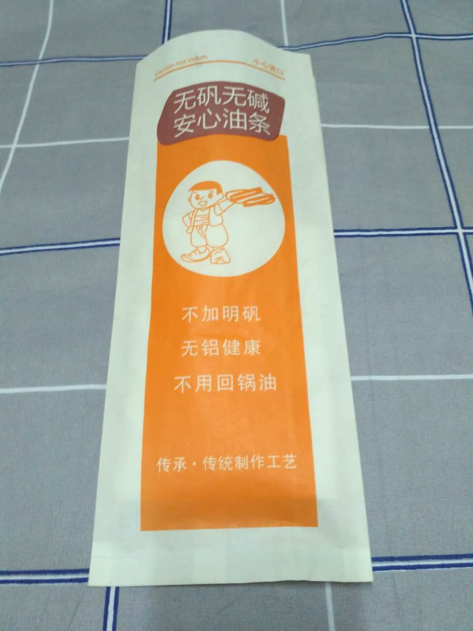 公司本著從市場實際出發,備有大量通用版的現貨,以備客戶急用,還可按客戶的要求來設計圖案、商標、公司logo、以及地址、電話、廣告 語、產品介紹等不同的油條紙袋