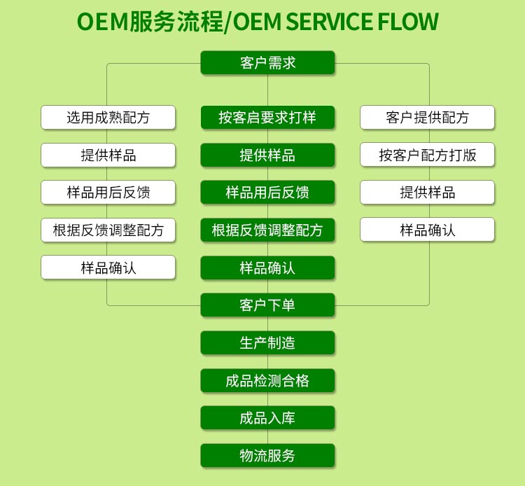 一、來樣品加工:客戶提出產(chǎn)品定位要求或相近樣品,我們負(fù)責(zé)配方設(shè)計(jì),小試打樣,客戶確認(rèn),生產(chǎn)控制。