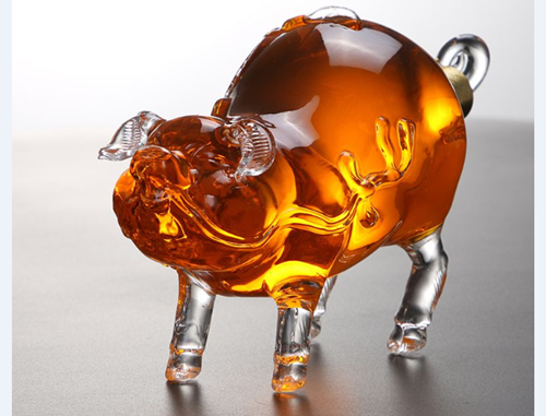 十二生肖玻璃酒瓶 豬豬工藝酒瓶 高硼硅玻璃廠家定制