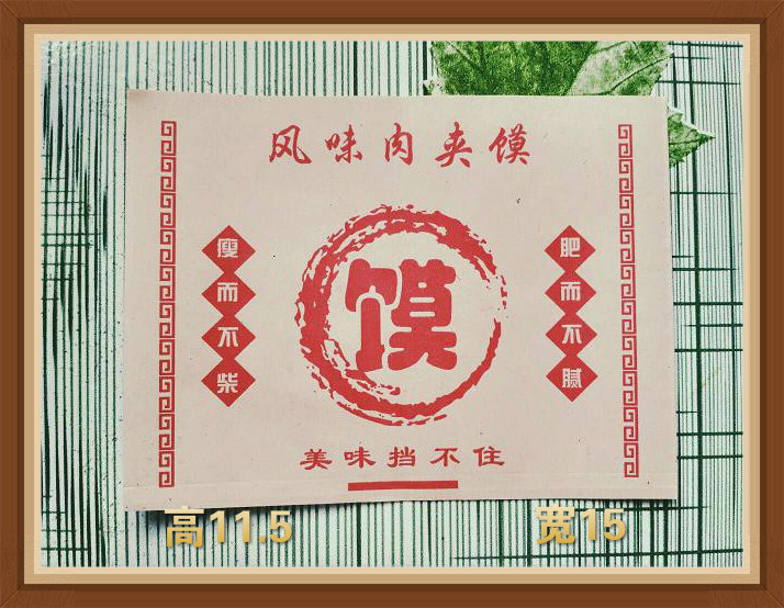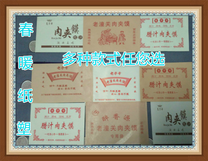 河北春暖食品包裝緊跟市場脈搏,想客戶之所想,率先采用防油淋膜紙生產了近百款肉夾饃紙袋,其版面新穎富有民族特色,深受廣大客戶歡迎。本款肉夾饃紙袋采用65克淋膜紙制作,由淋膜紙經分切、印刷、對折中封,熱封等工序完成,而且采用不齊口或中封工藝制作,便于盛裝肉夾饃。通用版肉夾饃紙袋無客戶地址電話,客戶在購買時無需再付版費。可依客戶需求加工定做,可為客戶免費設計肉夾饃紙袋版面。如客戶在購買此款肉夾饃紙袋后不滿意(貨物沒有壞損的情況下),可無條件退換。