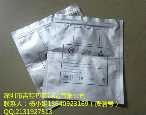 本品具備防靜電、防電磁干擾、防潮三大功能。封口牢固,各層材料之間復合能力強;四層結構,具有良好的防水、阻氧功能;耐穿刺。表面電阻值可達到:10的8次方到10的10次方歐姆。該產品還可根據客戶的要求,在不侵犯他人知識產權的情況下,印刷文字、圖案、商標等,助您提升企業形象。