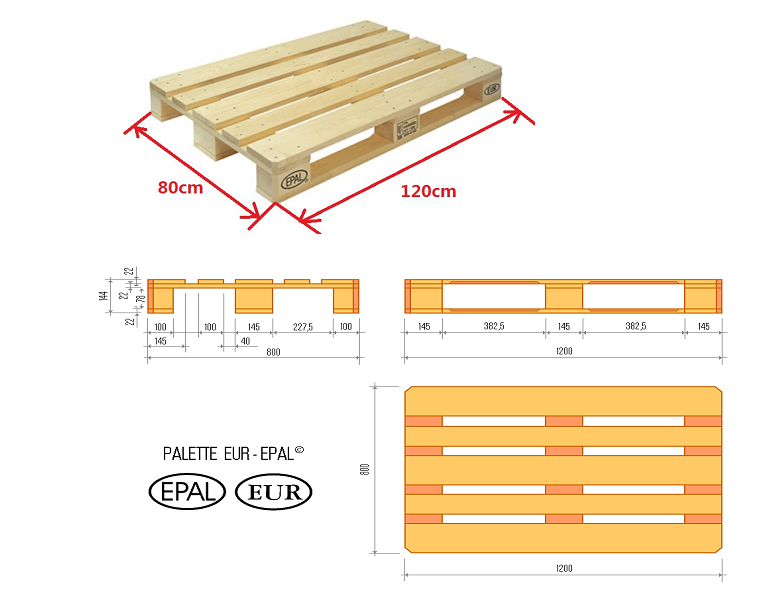 歐洲國家的木托盤(這里的歐洲包括東歐、西歐、北歐、以及中歐等),歐標木托盤的尺寸是1200*800*144mm,板材統一厚度22mm,它的木托盤結構只有一種,只能是四面進叉,歐標木托盤是上面托盤角墩上印有epal與eur標識,中間角墩上蓋有ippc消毒處理標識,但是現在出口上面印章蓋這么完全的廠家并不多,大部分只蓋有ippc標識,歐標木托盤的承重性能怎么樣,因為它是根據以下貨物堆放或所使用之叉車設計的,所以無論是液壓叉車還是燃油叉車操作起來都很方便。