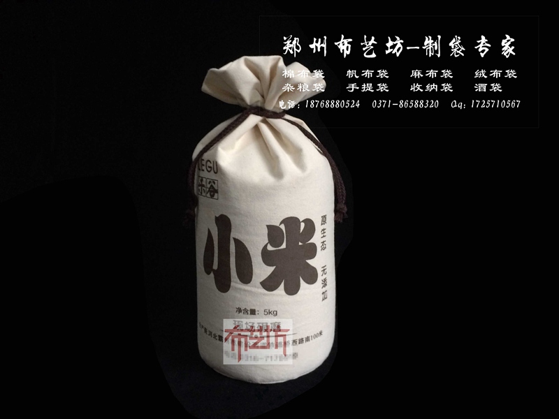 濰坊棉布大米袋 10斤環保抽繩帆布大米袋