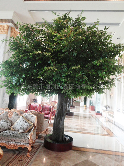 仿真榕樹樹桿有兩種做法,1是內部為鋼管鋼圈結構,樹皮為玻璃鋼,2是真樹干結構,真樹藤相互纏繞,用水泥固定,表層涂玻璃鋼形成更好的表皮效果。樹枝和葉子:樹枝是由真樹枝,葉子有絲印布和膠布兩種材質,根據客戶要求以及價格要求而定。仿真榕樹高度根據客戶要求而定,樹桿直徑和樹葉冠幅根據樹高而定,常規做法,或者根據客戶要求來做,價格根據大小而定。