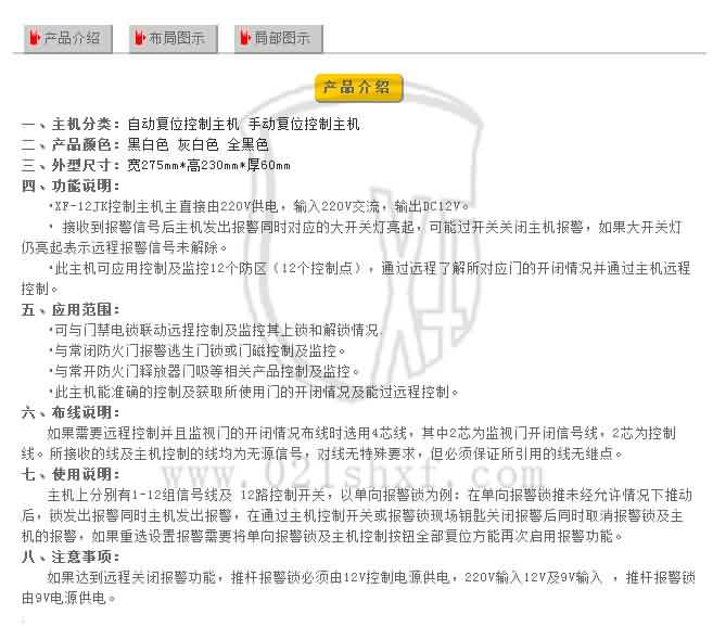 *此主機可應用控制及監控12個防區(12個控制點),通過遠程了解所對應門的開閉情況并通過主機遠程控制。