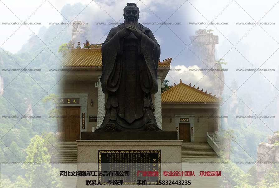 孔子,是我國歷史上偉大的教育家、思想家,開創了私人講學的風氣,是儒家學派的創始人,也是儒家思想的開創者,被后世統治者尊為“孔圣人”、“至圣”、“ 至圣先師”、“萬世師表”,是“世界十大文化名人”之首,對中國的歷史影響巨大,他代表著一個時代,代表著一種文化,千百年一直被人類所敬仰,銅雕孔子像造型有很版本,主要以雙手交叉于胸前的標準銅雕塑居多,是諸多校園雕塑中的主要組成部分,占據著重要地位,孔子雕塑出現在校園,以激勵學子們奮發圖強,自強不息,有著精神上的鞭策及指導意義。