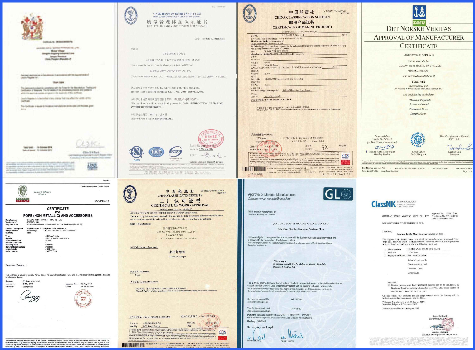 我司生產的所有產品均達到船級社認證標準,可提供中國船級社ccs、英國船級社lr、法國船級社bv、意大利船級社rina、德國船船級社gl、挪威船級社dnv、韓國船級社kr、日本船級社nk、美國船級社abs等國際權威船級社工廠認可及船用產品證書。