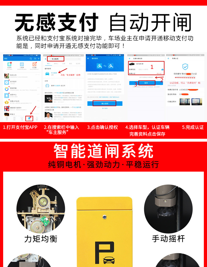伸縮閘桿長度2-6m可調;根據停車場使用環境可調整閘桿長度。