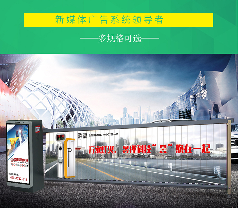 紐達nd-502智能擋車器廣告 道閘外形簡潔大方,擁有最|好視角的廣告 燈箱與翻板廣告 位。翻板可拆卸,易換畫面,操作簡單。