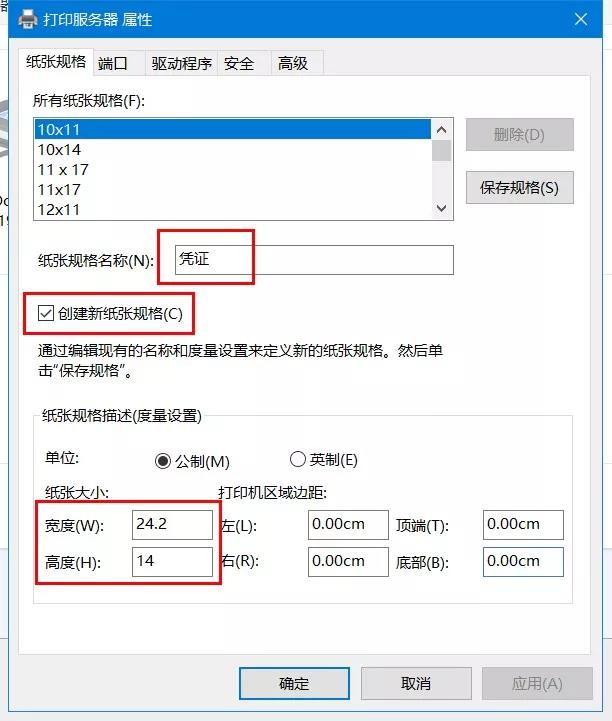 打開計算機的控制面板,設備和打印機,單擊打印機圖標(打印憑證的那臺),上方會出現【打印服務器屬性】,勾選創建新表單,輸入名稱紙型,如憑證,輸入紙型的尺寸,單位一般是厘米,確定即可。