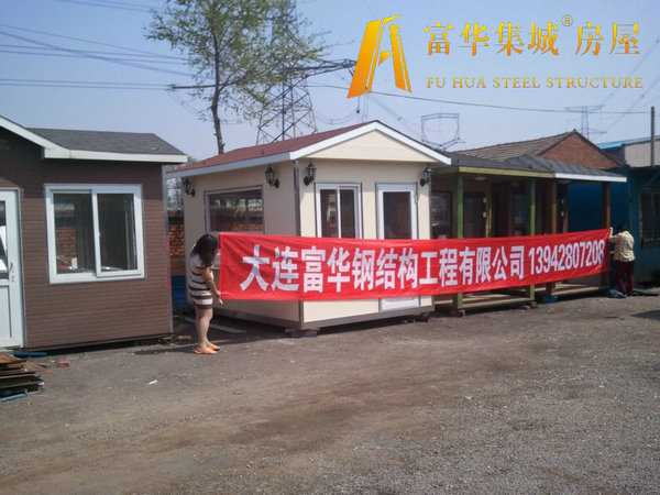 大連富華集城品牌房屋制造企業,多年以來一直致力于各式輕鋼房屋、歐式崗亭、保安 亭、輕體房、垃圾房、設備房的設計,制作,安 裝等工作,富華集城品牌出廠的房屋產品結構合理,造價低廉,現在已被廣泛使用。富華集城?企業近年以雄厚的生產技術設備為依托,吸取國外發達國家的先進技術和經驗,廣泛采納先進工藝技術,主要承接 輕鋼房,活動板房,崗亭等各式可移動式房屋產品 。