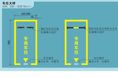 小車停車位:長度大于等于5米,寬度2.2-2.5米。