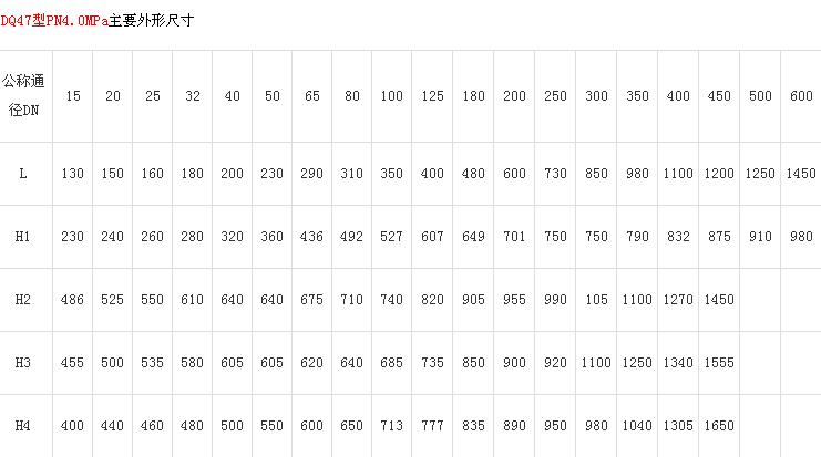 gdq47型pn1.6~2.5mpa主要外形尺寸