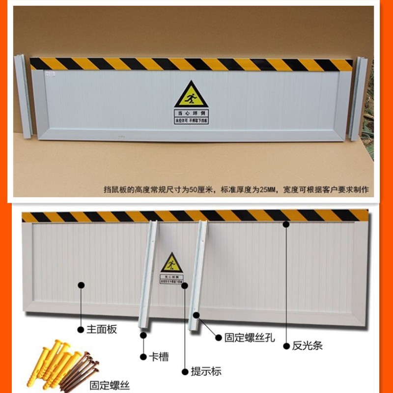 擋鼠板上部貼有反光條,夜間容易辨別,防止人員被絆倒
