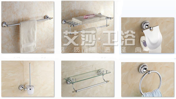艾莎衛浴 開發、生產及銷售:衛浴掛件,五金掛件,毛巾架,置物架,紙巾架,衣鉤,馬桶刷,毛巾環,毛巾桿,皂液器,單杯單碟,雙杯,紙巾盒,多功能刀具架,晾衣繩,龍頭,淋雨花灑,等衛浴相關產品;專業打造太空鋁、不銹鋼、全銅廚衛五金掛件.《《網上只發布部分產品也無法時時更新,如果需要了解更多新款產品請電聯或者qq、微信了解。如果外貿,酒店,工程采購需要老款物廉價美產品,只要你有量停產業有磨具一樣可以接單,歡迎來圖、來樣定制。》》