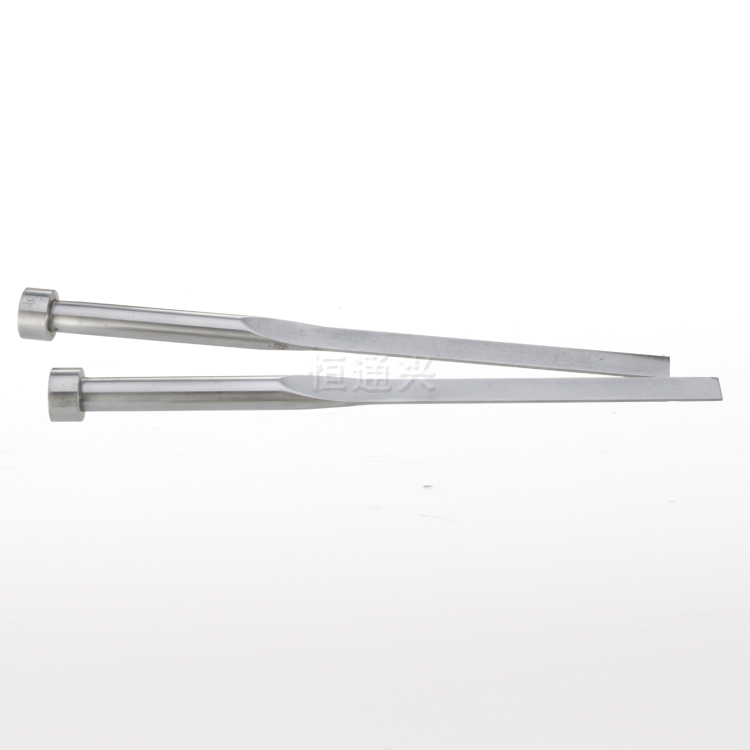 扁頂針用于塑料產品筋條部分的頂出,是塑膠模具配件,用于塑膠模具中。