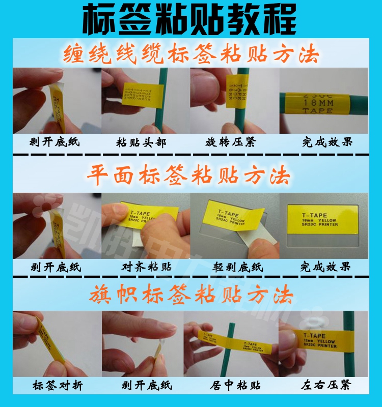線纜標(biāo)簽 色帶是由特殊材料制成,適用于粘貼在光滑的彎曲部位以及圓柱形的表面。制成的標(biāo)簽 可以粘貼到各種邊緣部位、電纜電線、液壓部件等物體表面上。粘貼在圓柱行物體表面時(shí),建議最小直徑為3mm。用標(biāo)簽 卷一圈后,建議標(biāo)簽 疊蓋處的最小長(zhǎng)度為5mm。