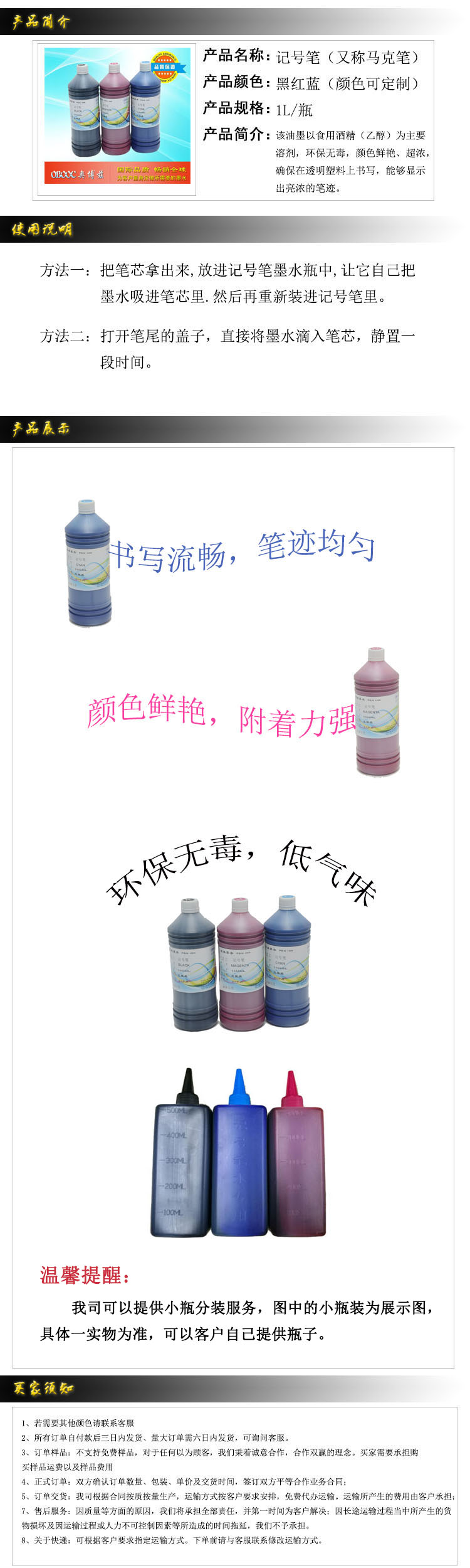 瀏覽:364次[供應]可加墨大頭筆/簽字筆/大字筆補充油墨 記號筆替換補充液