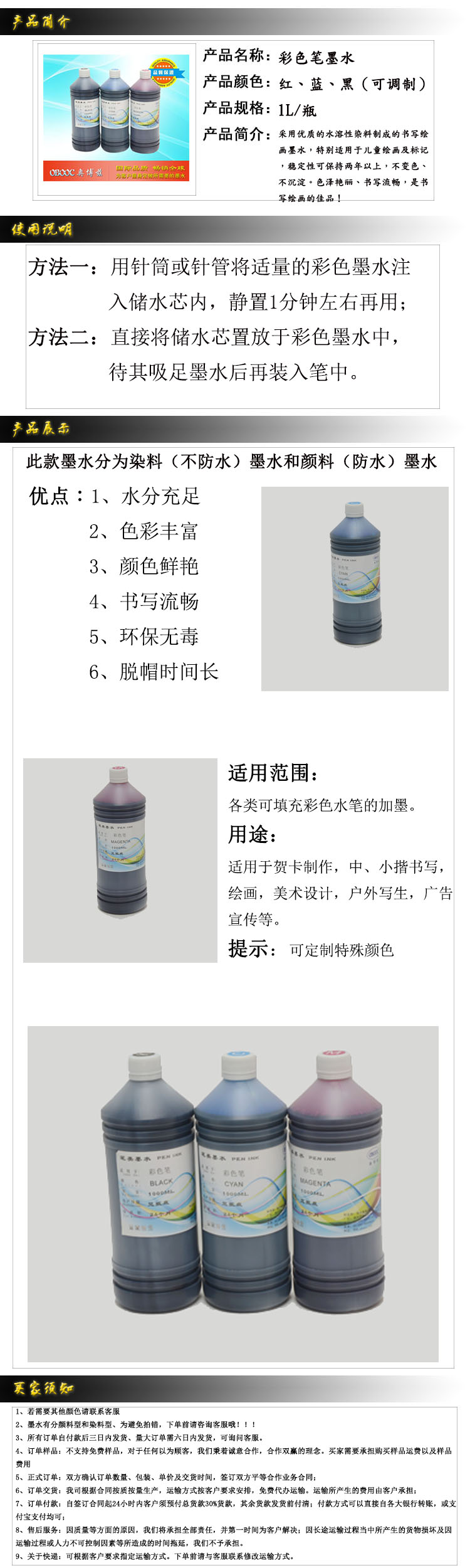 瀏覽:358次[供應(yīng)]兒童繪畫水彩筆墨水 顏料墨水 可填充彩色防水墨水