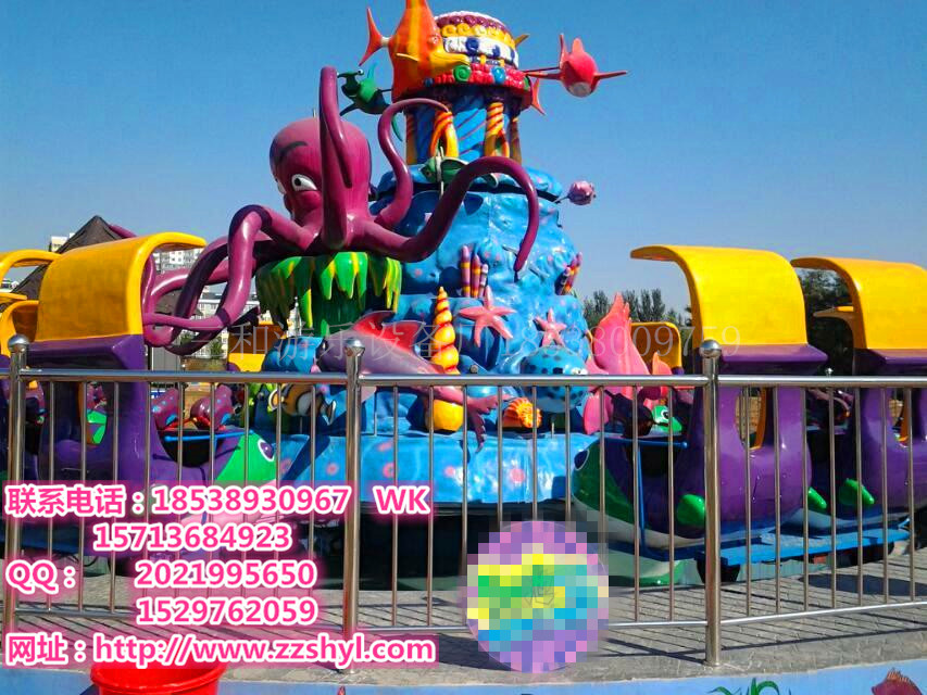 旋轉大章魚是深受廣大兒童、成人歡迎的一種游樂項目,設計新穎、結構獨特、造型美觀。新穎的燈飾,動聽的音樂使人們在游玩中既能體驗眩暈中的快樂,又能體驗旋轉升降的驚險,給人們以輕松刺激_的感覺。
