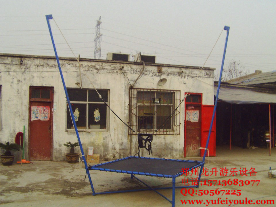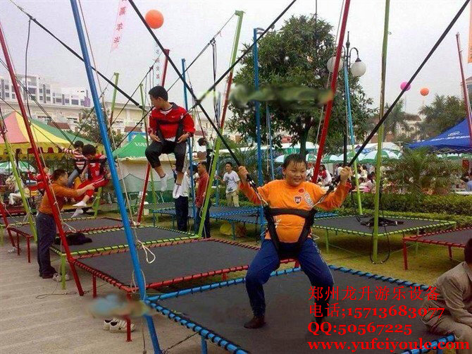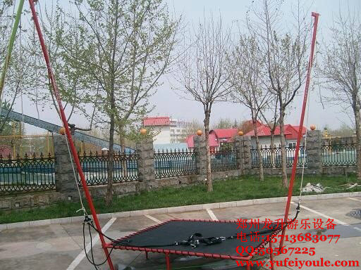 兒童蹦極跳床它應用一張跳床、一副彈力繩和支桿立柱,讓你在4米的高空中停止上下騰躍并做出各種把戲
