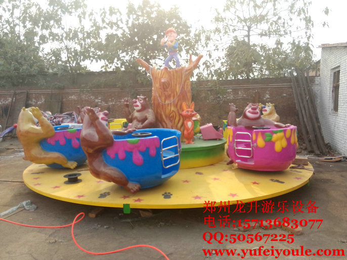 ?熊出沒旋轉(zhuǎn)杯, 根據(jù)最新動畫片熊出沒為設(shè)計題材,經(jīng)過不斷地改良設(shè)計加工,而推出的新款,主干以樹為中心,四周分布著造型各異的熊大和熊二兩兄弟,座艙呈杯子形,有可愛的熊兄弟抱著,配有方向盤,安 全帶,是親子互動的最佳選擇,樹頂有持槍警戒的光頭強,隨時準(zhǔn)備砍樹,漂亮又形象,給人身臨其境的感覺。可愛憨厚的熊大和熊二,一心砍樹的光頭強,他們之間即將上演一出激烈的人熊之間的森林斗爭,斗智斗勇,你爭我搶。最后誰會勝出,需要你的親自體驗。鄭州龍升游樂設(shè)備以博大的胸懷,過硬的技術(shù),一流的質(zhì)量,優(yōu)惠的價格,到位的服務(wù)真誠歡迎你的來電!我們保證讓你滿意100%。