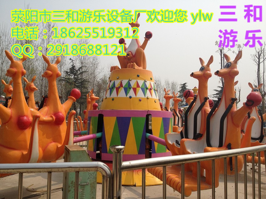 “袋鼠跳”是種新型彈跳類游樂設備,又叫袋鼠跳跳樂,歡樂袋鼠跳,產品座艙造型有六組袋鼠組成,每組可乘坐兩人,造型可愛生動,童趣十足,適合不同年齡階段的人乘坐,該游樂設備運行時,伴隨奇妙的音樂,座艙會隨著設備的旋轉而上下跳動,猶如坐在袋鼠的肚囊一般,給你帶來不一樣的乘坐體驗和樂趣。