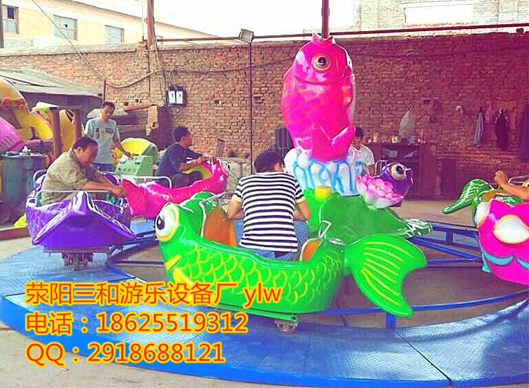 “鯉魚跳龍門”該設備投資小回本快,無需固定基礎,普通電壓即可運行,客流量大,參與性強,適合室內外移動靈活經營。設備運行時,軌道上下起伏,忽上忽下,每條鯉魚座艙上有兩把水槍,扣動開關可射水,并發射激光,打在中心動物身上,動物可噴水并配有音樂,新奇好玩,激光的應用使您在寒冷的冬季也可經營,是兒童的理想選擇,也是投資商的最佳選擇。