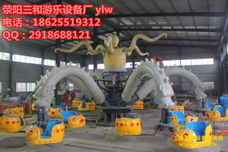 大章魚屬臂類兒童游樂設(shè)備,外觀可愛,造型生動有趣,在各大中小型游樂場所較為常見。設(shè)備開始自行繞中間的回轉(zhuǎn)軸轉(zhuǎn)動,同時各座艙也同時水平旋轉(zhuǎn),大章魚的旋臂隨著中回轉(zhuǎn)軸的轉(zhuǎn)動而上下浮動,如龐大的章魚在舞動自己的爪子。氣勢磅礴,非常壯觀。小朋友做在其中覺得極為刺激驚險,所以一直深受小朋友的歡迎。